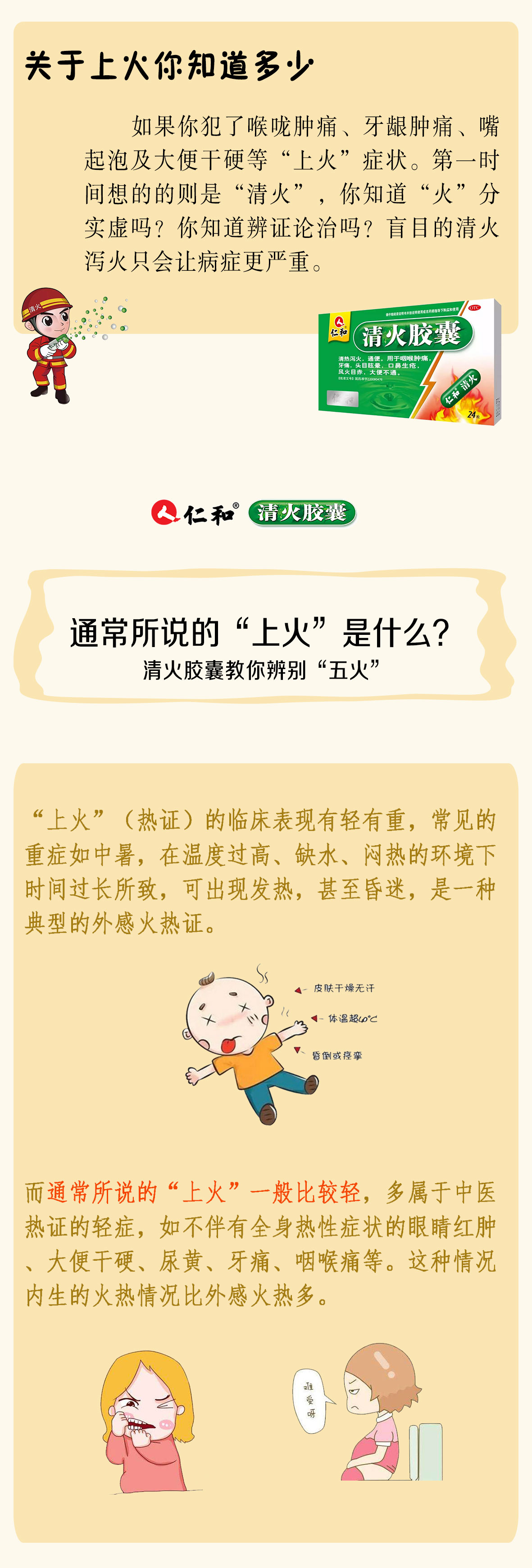 相傳在公元1900年8月,八國(guó)聯(lián)軍入侵北京,慈禧被迫逃離京城,一路提心吊膽,倉(cāng)皇失措,經(jīng)過(guò)連日奔波,終于在這天到達(dá)榆林堡(今屬河北省懷來(lái)縣),借住在老百姓劉老頭家中。 次日醒來(lái),感覺口干舌燥,拿隨身鏡子一照,竟然發(fā)現(xiàn)臉上長(zhǎng)了痘痘,這讓一直以來(lái)注重保養(yǎng)、極度自戀的老佛爺大為沮喪。要是在宮中,早就宣太醫(yī)來(lái)開方調(diào)養(yǎng),然而現(xiàn)在是逃難時(shí)期,哪有太醫(yī)隨侍身側(cè)。 見此情景,劉老頭向慈禧推薦了一聞名鄉(xiāng)里的老中醫(yī)。老中醫(yī)醫(yī)術(shù)高明,觀察了太后的臉,接著詢問(wèn)了連日來(lái)的飲食,隨即開了一劑方子,囑咐連服三天即可。太后將信將疑,吩咐隨身宮女按照老中醫(yī)開的方子抓藥、煎藥,接連服用了三天,果然痘痘消失了,雖在盛夏時(shí)節(jié),卻感覺神清氣爽,在隨后的逃難途中,每逢上火,必用次方,屢試不爽。 一年后,慈禧回到宮中,一直惦記那個(gè)老中醫(yī),有心將他任命為太醫(yī),便派人去請(qǐng)他入宮??上в芰直さ膭⒗项^說(shuō),老中醫(yī)就象閑云野鶴,已經(jīng)游走四方了。 慈禧聽后非常遺憾,便把老中醫(yī)當(dāng)年開的藥方交給太醫(yī)院保留存檔。而這個(gè)方子也是現(xiàn)在的清火中成藥知名者——仁和清火膠囊的前身。